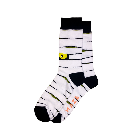 Unravel a ghoulishly good time this Halloween with MAZE’s Mummy socks! Our socks are wrapped up with eerie elegance, much like a mummy, but fear not, no ancient curses included. The eerie eyes peeking through are just here for the boos, not to haunt your soles. Slide into a pair and you’re all set to be the ‘life’ of the monster mash or at least have the most spook-tacular feet on the block. Hurry and snag a pair—unlike mummies, they won’t stick around for centuries! With MAZE’s Mummy socks, every step is a scream… of style!
