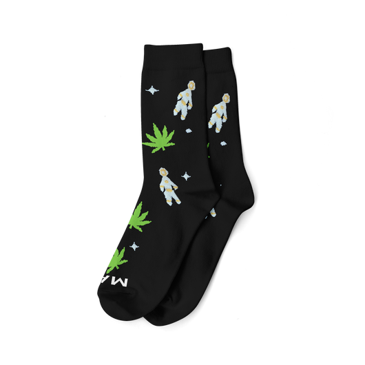 These socks feature astronauts, stars, hemp leaves, and a super soft cotton blend for ultimate comfort that's out of this world. We've partnered with the cool folks at Ceylonese Smoking Culture on this one too and the pair comes with its own perforated tips label.