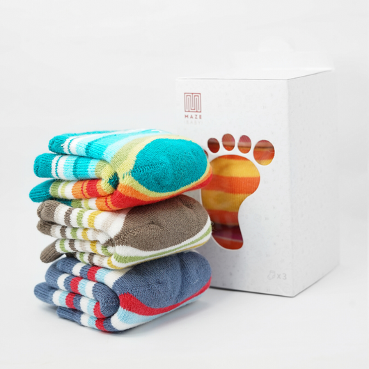 Crafted with a soft cotton blend with knit-in designs, we use only the best and most comfortable materials to guarantee your baby stays happy and warm. Pair these super-soft bold coloured MAZE Baby Spring socks with your favourite outfits! Your bundle of joy's feet will feel their best in these cotton blend socks designed to stretch for natural movement. This unique fabric makes for quick and easy care. You will love collecting all of the colours found in these sets. Stock up on your favourites!