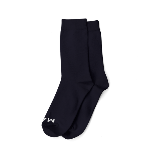 Our MAZE Basics navy socks slip with elegance in all your shoes. Perfect with a blazer or discreetly with dark chino pants. Casual everyday wear, our navy crew socks generally reach the mid-calf. Comes with Arch Compression for support and stability to reduce foot fatigue - hugs your foot and keeps sock in place. Basic and comfortable, MAZE Basics crew socks are essential to any smart wardrobe.