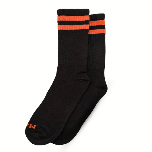 'Sunset Skater' captures the essence of retro style with a modern edge. Black socks with striking orange stripes transport you to the vibrant 70s skate parks or a Sunday drive. Made from the best cotton, they're a blend of comfort and cool. Ride into the sunset of style – order your pair online now!
